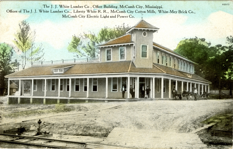 From The J. J. White Lumber Co. office building, McComb City, Mississippi. Office of the J. J. White Lumber Co., Liberty White R. R., McComb City Cotton Mills, White-Mey Brick Co. Sysid 92621. Scanned as TIFF in 2007/04/05 by MDAH. Credit: Courtesy of the Mississippi Department of Archives and History.