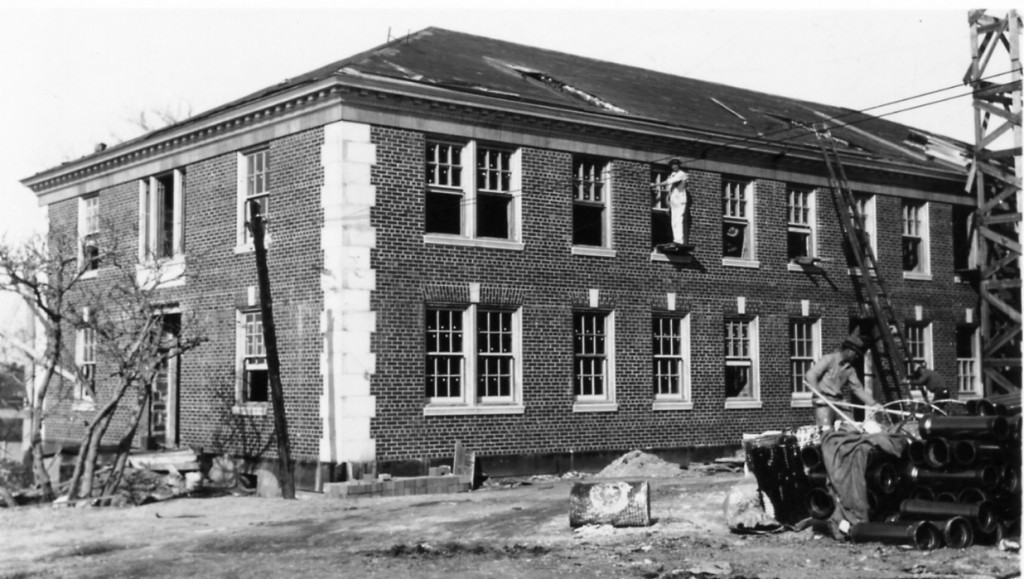 Boys' Dormitory under construction, Institute for the Blind, 1934. Designed by the Jackson firm of Hull & Malvaney, this building survived almost hidden within the Baptist complex until it was demolished for a parking lot around 2005.