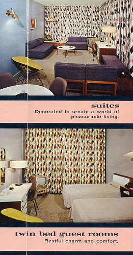 Operations continued under the aegis of the Enochs family until the 1930s when ownership passed to lenders, but the family was able to regain control of the property in 1946. It was sold in 1954 to Jackson entrepreneur Dumas Milner for $1m. Milner’s $700,000.00 program of renovation and modernization was nothing if not thorough. Few corners of the 400-room hotel were left untouched. In went modern touches like an escalator to the mezzanine floor, a fifth floor rooftop swimming pool with the hopping Patio Club and mod furniture throughout all twelve floors. Out went the grand rotunda, filled-in to accommodate a new ballroom. Society spots like the Petroleum Club moved in too. In 1960, a new and even larger convention hall was added on Capitol Street. The legislators continued to make the King Edward their unofficial home, thus continuing the oft-uttered joke that there were three houses of the Mississippi Legislature, the Upper, the Lower and the Edwards House. The dining room was changed several times during these years. The former Venetian Room became the French Verandah after an elaborate makeover. When this proved less than popular, Milner remade it again into the “Coach and Six.” There was also a popular oyster bar on the northwest corner facing Capitol Street. Milner also banished most of the offices from the third, fourth and fifth floors in order to accommodate more hotel rooms. There would eventually be a total of 407 rooms, though many of them would be considered small by the standards of our day.