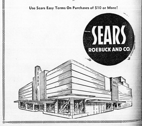 The drawings also remind me of these two sketches I found in the 1948 Jackson City Directory advertising what would have been brand new department stores in downtown Jackson, the Sears and the J.C. Penney’s. These buildings seem to have one foot in the Art Moderne (especially Sears) and one in the International style. While the Sears building still stands as the Eudora Welty Library, the Penneys–located in the 100 block of E. Capitol–was destroyed by a last gasp of urban renewal in downtown Jackson in 1979. Thankfully, even then, when the building was only 30 years old, architectural historians appreciated the design enough to have it documented at least in photographs by the Historic American Buildings Survey. No matter how many times I look at these pictures, I’m still amazed that Jackson ever had such a spectacular Modern department store building (and of course, that we lost it).