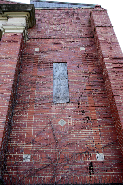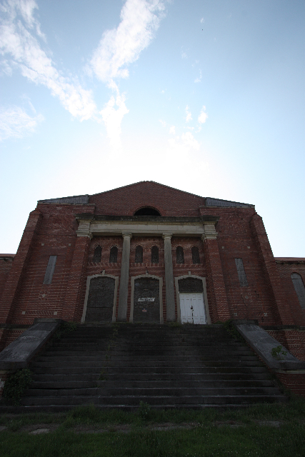 Lots of people responded to last month’s post documenting the continuing and accelerating decline of Catherine Hall and the other landmark buildings at the old Mississippi Industrial College campus in Holly Springs, now owned by Rust College. One person who found the post was Ashleigh Burke, a South Carolina photographer who passed through Holly Springs on Memorial Day weekend and photographed the Carnegie Auditorium building. This building is perhaps the most salvageable of the “front three” that are so familiar to passers-by. Built in 1923, it was funded with a grant from the Carnegie Foundation and designed by one of the first African American architectural firms in the South, McKissack & McKissack of Nashville, Tennessee. The only other project that I know of by the McKissacks in Mississippi is the Taborian Hospital in Mound Bayou, built in 1940.