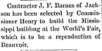 ‘J. F. Barnes Contractor for Mississippi Building 1904 Worlds Fair Biloxi Daily Herald Sept. 2 1903 Vol 6 Iss 15 P. 2’ Published May 7, 2013 at 524 × 262 in Spreading Seeds of Beauvoir Everywhere Biloxi Daily Herald Sept. 2 1903 Vol 6 Issue 15 PG 2 ‹ Back