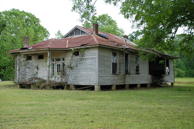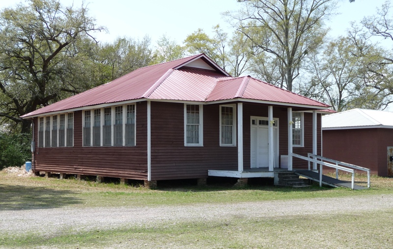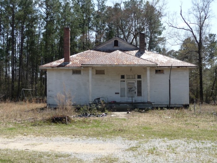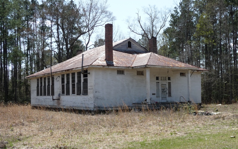 Just a few clicks from Indian Hill is the most maintained of the bunch, the old Howell School, now used as a community center. While the roof is a too-bright-red-for-me metal one, at least it’s keeping the building dry and safe. This one also has the distinction of being one of the few frame school buildings left in the state that have kept their original stain rather than being painted. Most of these 1920s schools, including Rosenwalds, were stained either brown or dark green, with white trim, just like Howell.