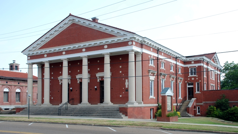 3. This church is similar in massing to the now-demolished Crystal Springs Methodist Church (Methodist Episcopal Church, South). The Crystal Springs church had arched windows along the sanctuary but the window placement is similar. First Methodist Church of Brookhaven chose decorative brickwork on the front facade over windows, unlike the Crystal Springs church.