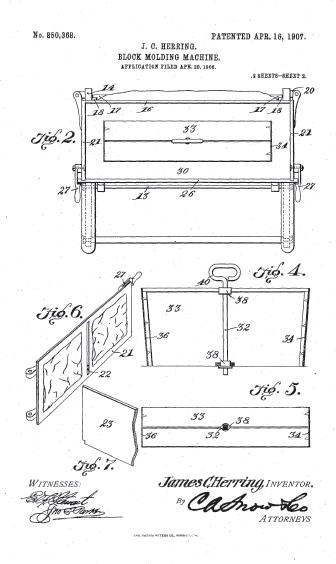 By the turn of the 20th century a block machine that could make a different block face simply by changing the faceplate is common place.