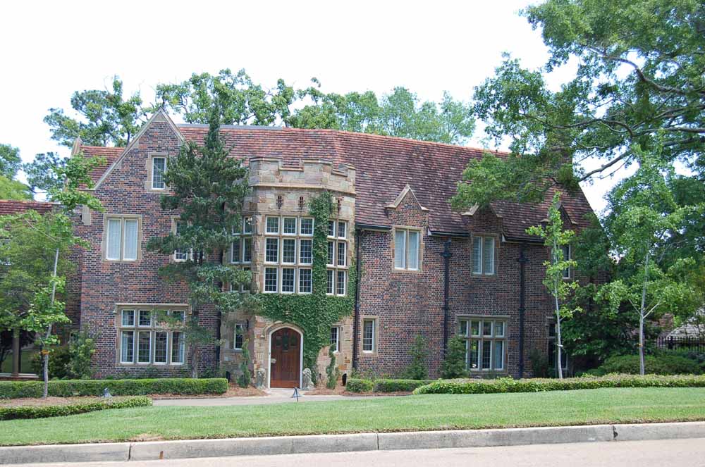 Castle Crest, located in Jackson’s Woodland Hills Neighborhood, is perhaps the finest example of a Tudor Revival residence in the state. J. Frazer Smith, prominent Memphis architect, designed the home for Jackson businessman I.W. Merrill in 1930. The exterior of the house exemplifies the Tudor Revival style in its steeply pitched and cross-gabled roof, asymmetrical and eclectic façade, semi-hexagonal turret with crenellations, casement windows with leaded glass lights, cast-stone trim around window openings, massive chimneys, Tudor arched door openings, and half-timbering in the gable ends. The interior also reflects Tudor Revival details with Tudor arched doors, cased openings with surrounding plasterwork made to resemble stone quoining, heavy dark-wood beamed ceilings, dark stained trim work, oak flooring in varying patterns, decorative stenciling with medieval motifs, iron and glass light fixtures, metal railings with medieval motifs, and a replica of a stone fireplace from Warwick Castle in England. Castle Crest was listed on March 22, 2010. David Preziosi, Executive Director of the Mississippi Heritage Trust, wrote the nomination.