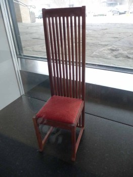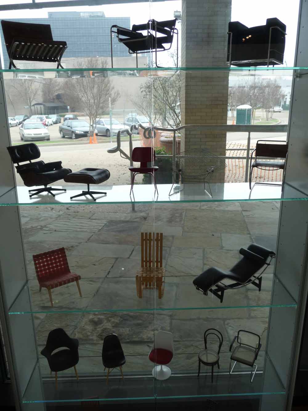 Well, I certainly didn’t think I’d learn all that just from taking a few nerdy pictures at the art museum. I also didn’t realize that these and many other miniatures are for sale on the internet through the Vitra Design Museum Shop. Frank Lloyd Wright’s Robie House chair can be had for 188 euros, which my computer tells me is about $260.00, and the Eames Lounge and Ottoman is a mere $671.00. Seriously, is it legal to put this kind of temptation out there for the innocent bystander to get pulled into?