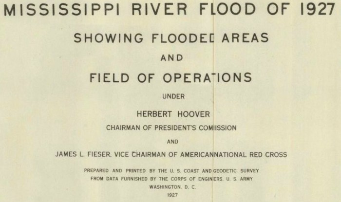 Speaking of the 1927 Flood it’s helpful to look at a map showing the extent of the flooding in that epic year. We keep hearing that this flood might be “as high as the 1937 flood” or “close to the 1927 flood,” but not having lived through those floods, I’ve had a hard time picturing what these statements mean, even after reading about the ’27 flood for years. This map is available on both the United States Digital Map Library and the MDAH website–both sites contain a treasure trove of other interesting historical maps in digital form.