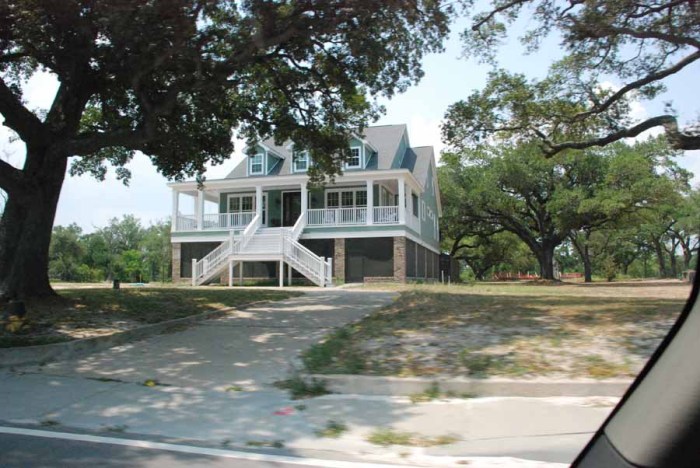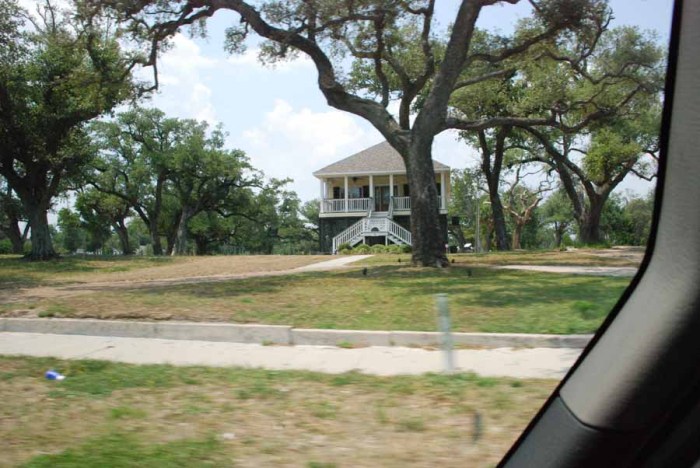 I happened to be a passenger in a van traveling along Beach Boulevard from Ocean Springs to Gulfport last week, and while I occasionally have taken pictures while driving, I can now definitively say that it’s much easier to do while riding. Forced by my compatriots to be a back-seat driver, I made lemonade out of lemons and snapped away, compiling a group of photos that forms a visual commentary of the Mississippi Coast, going on 6 years after Katrina. Thankfully, I had my trusty but bulky Nikon D80 SLR with me instead of my easier Panasonic Lumix DMC-TZ5 point-and-shoot, which has too much of a delay to be useful while driving or riding.