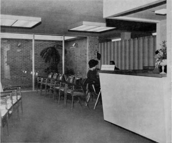 The need for separation of the various components of this clinic building was the primary consideration in providing separate waiting room facilities and court for each medical group, yet allow each individ- ual group the advantage of combining the business office facilities and other facilities required by all of the doctors.