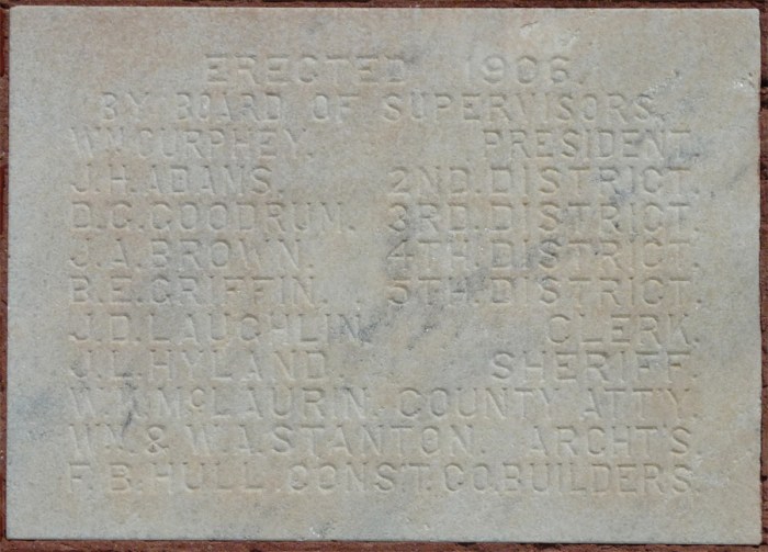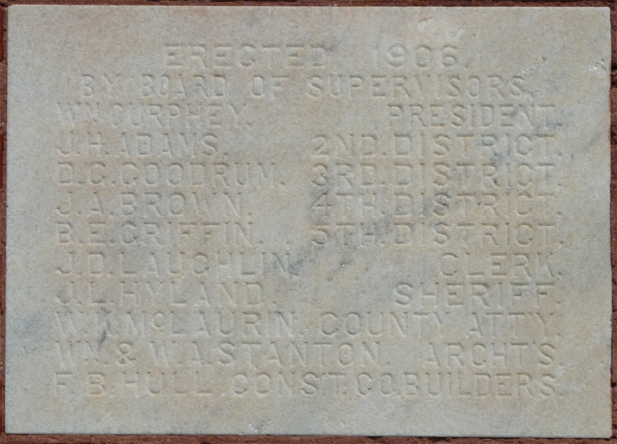 According to MDAH’s handy new Historic Resources database, whose arrival we announced yesterday, in addition to the Vicksburg buildings noted above, Hull’s firm was responsible for the Tallahatchie County Courthouse and Sharkey County Courthouse (both 1902), the 1907 Noxubee County Jail in Macon, and the George County Courthouse in Lucedale (1911).