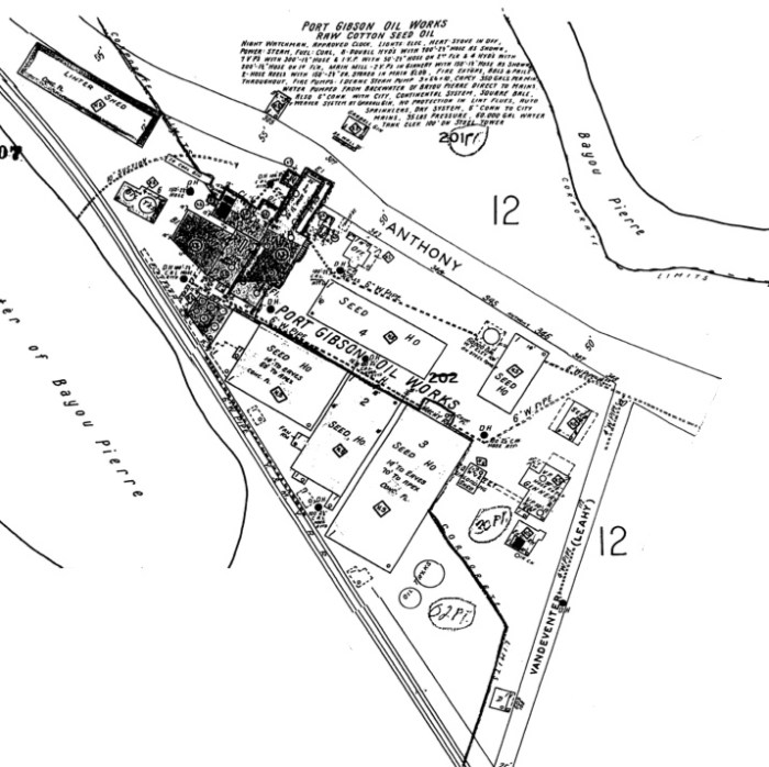 This 1994 article in Agricultural History, “Cotton Gins and Cottonseed Oil Mills in the New South” may be worth the $14 that JSTOR wants to charge me. And this 1948 Sanborn on microfilm at MDAH (and a little cleaned up on Photoshop) shows somewhat of the layout and functions of each building, although it doesn’t show the later silo-type buildings.