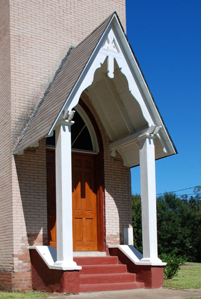 The cornerstone jogged my memory. My one brain cell worked today :) I remembered it was in Lexington(?) I thought. So I just typed Lexington on your wonderful site and Eureka! Long ago when you took us there, I was so surprised it was not Anglican or Roman Catholic. There are so many features of the church that make it unforgettable: 2 narthexes, each with quite different topping details. I hope the one over the cornerstone entrance is the bell tower and the other is just decorative. Excellent execution of detail without mention of an architect. Whodahthunit in little ol’ Lexington, Mis-sip-E?