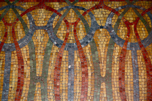 mosaic tile on atrium fireplace, Charnely-Persky House / Adler & Sullivan (with Wright) / Chicago, Illinois / 1891, photo by Nate Hofer (Flickr), taken December 2010.