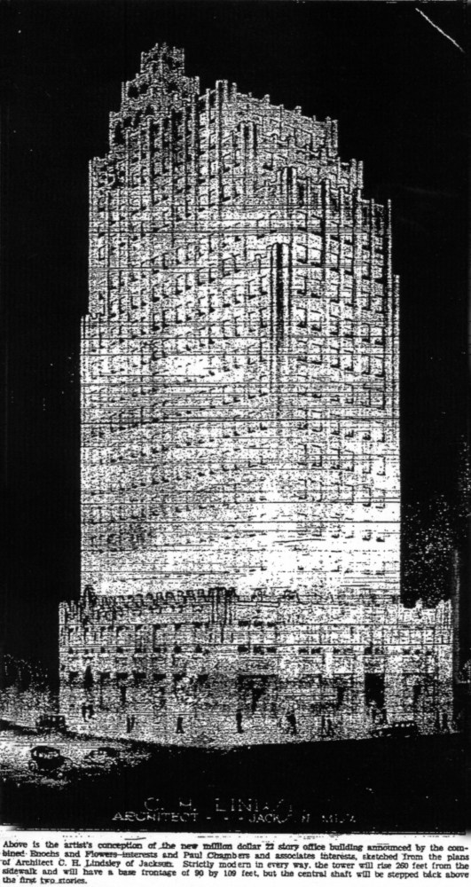 ‘TowerBuilding’ Published July 31, 2012 at 1604 × 3022 in Newspaper Clippings: Jackson’s Art Deco Icon at the Beginning Rendering of the Tower Building c.1929 ‹ Back