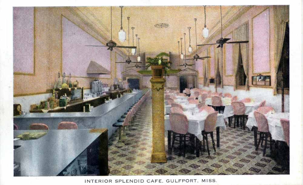 The Splendid Cafe was in Gulfport on the corner of Twenty-sixth Avenue and Thirteenth Street, north of the Great Southern Hotel. The owners operated a hotel upstairs.The men who drove the famous Magnolia Route non-stop from Gulfport to Chicago in the 1925 ate breakfast provided by the owners of the Splendid before beginning the endurance trip. Joe Casey commerated the event in his book, “The Magnolia Route: 1923-1927.”