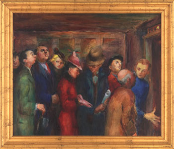 The photo above is one of my favorites of Hollingsworth’s paintings, depicting the elevator in the Tower Building, better known today as the Standard Life Building. It looks like at least two interesting conversations are going on, while the two guys in the back are just wishing the elevator would move faster so they don’t have to listen.