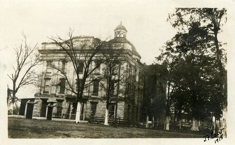 T.F. Laist, 1915. North side of Old Capitol Building, sign in front says “Danger Keep Out.” MDAH Accession PI/STR/C36 /Box 20 Folder 95