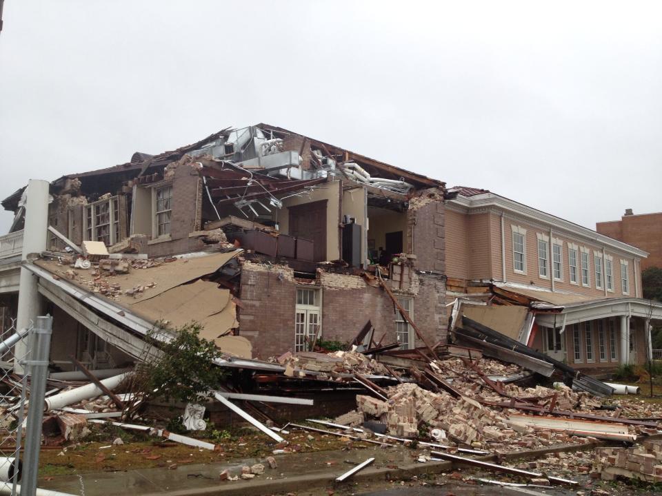 ‘531618_10152549901655532_712929137_n’ Published February 12, 2013 at 960 × 720 in Tornado Damage in Hattiesburg Ogletree Alumni House, USM (1912, R.H. Hunt, archt.) ‹ Back