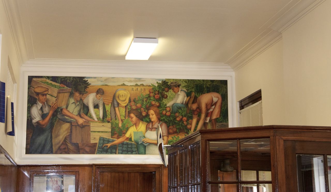 ‘mural wall’ Published March 23, 2013 at 1280 × 743 in Crystal Springs Tomatropolis: Henry La Cagnina’s Harvest Image used with permission of USPS. ‹ Back