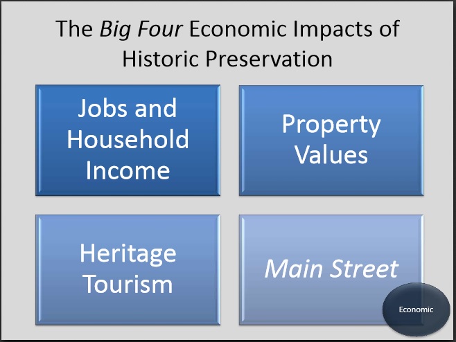 Slide 4, Historic Preservation and Economic Development Recent Lessens from Home and Abroad by Donovan Rypkema, Place Economics, Washington D.C. Presented April 26-27, 2012