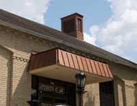 ‘canopy’ Published July 22, 2013 at 1280 × 995 in New Deal in Mississippi: Old Batesville Post Office copper visor over door with transom and sidelights ‹ Back