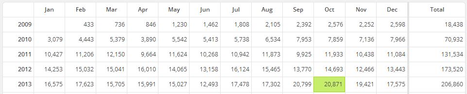 Busiest month: 20,871 (October 2013)