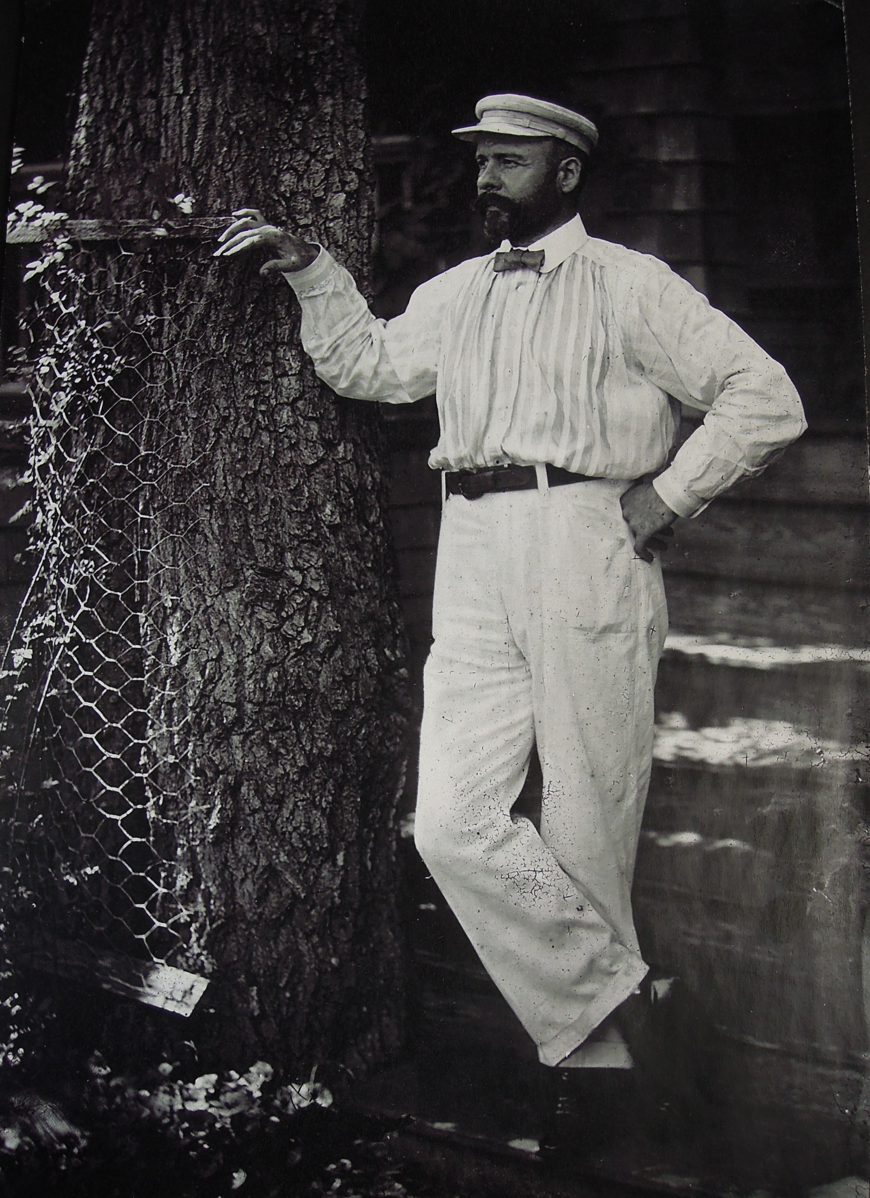 Louis Sullivan designed and built vacation homes for himself and James Charnley in 1890 on East Beach in Ocean Springs. Pictured in front of his home, Sullivan described his time at his winter home as “peace, peace, and the joy of comrades, the lovely nights of sea breeze, black pool of the sky over sprinkled with stars brilliant and uncountable.” Photo/Courtesy of Ryerson Burnham Archives, Art Institute of Chicago