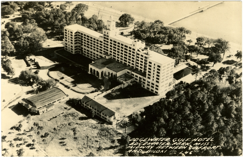 From Edgewater Gulf Hotel, Edgewater Park, Miss. Midway between Gulfport and Biloxi. Sysid 91885. Scanned as tiff in 2009/07/31 by MDAH. Credit: Courtesy of the Mississippi Department of Archives and History