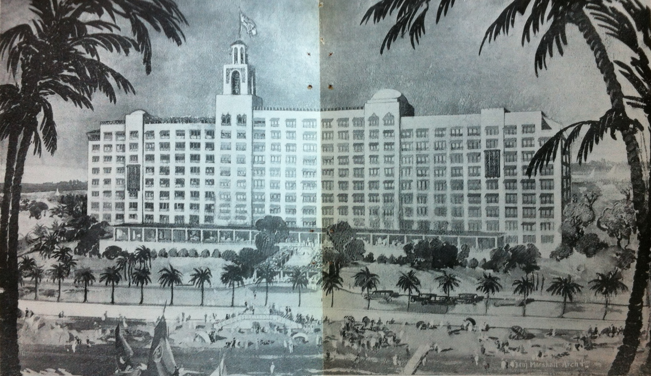 Detail Edgewater Gulf Hotel Biloxi, Harrison County rendering signed by Benj. Marshall, Archt. from ‘Way Down South Magazine Nov. 28, 1924 from Harrison County Library collection