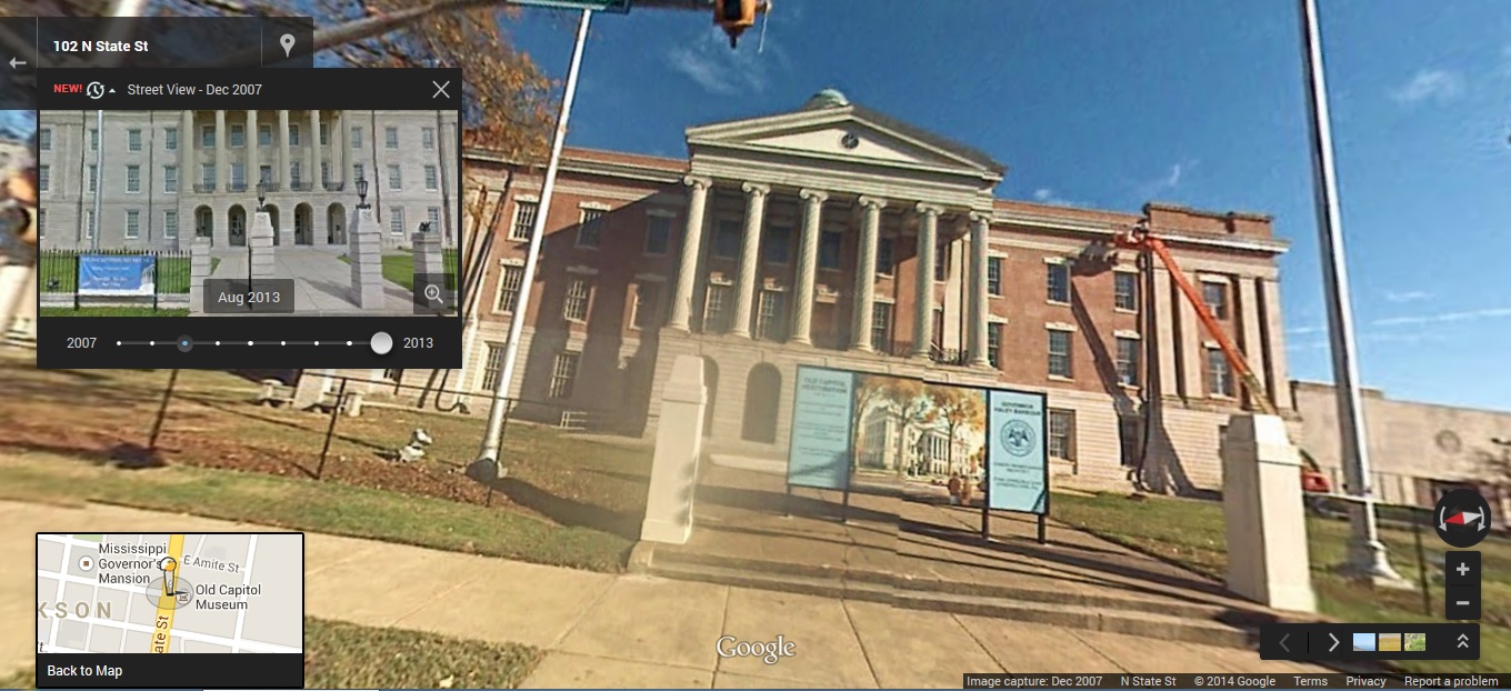 ‘Old Capitol, State Street Jackson, Hinds County. Google Street View Dec 2007. accessed 4-25-2014’ Published April 25, 2014 at 1360 × 622 in Mississippi Time Travel Old Capitol, State Street Jackson, Hinds County. Google Street View Dec 2007. accessed 4-25-2014 ‹ Back