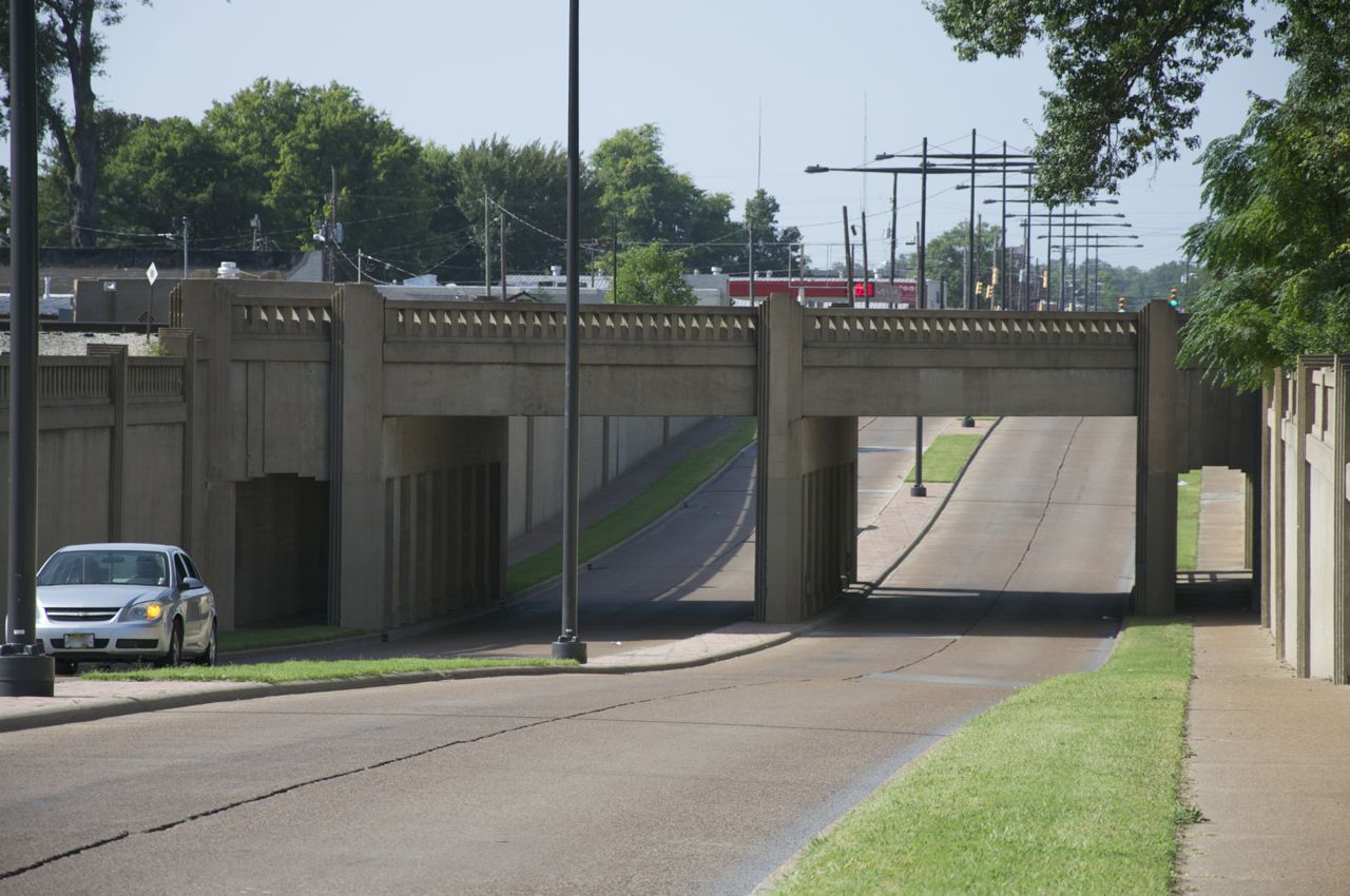 The Yazoo and Mississippi Valley train tracks crossed Main Street, and constructing the underpass allowed traffic to pass under the tracks (Preservation Press, 2011). Abbott, a civil engineer, was assisted on the project by his two sons, Charles G. Abbott and Fred Abbott (Darden, 2008-2009). The project also included an Art Deco style pump house, to help remove water from the underpass.