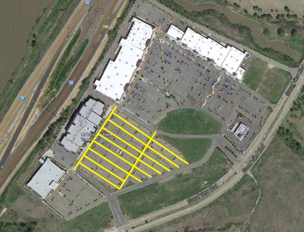 Half of the original Madisonia fortified city survives in the L-shaped section with white roofs. The corner towers are an obvious sign that the Greco-Romans came under attack at some point in their history, leading them to renew the idea of a walled city with guard towers. The Malco Theater section was a later addition to the city grid, and its parking lot lanes are a clever disguise of the original Roman centuriation grid system.
