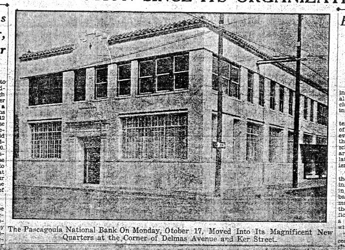 Pascagoula National Bank. The Chronicle-Star 10-21-1938 Courtsey of the Pascagoula Genealogy and Local History Department, Jackson-George Counties Regional Library System.