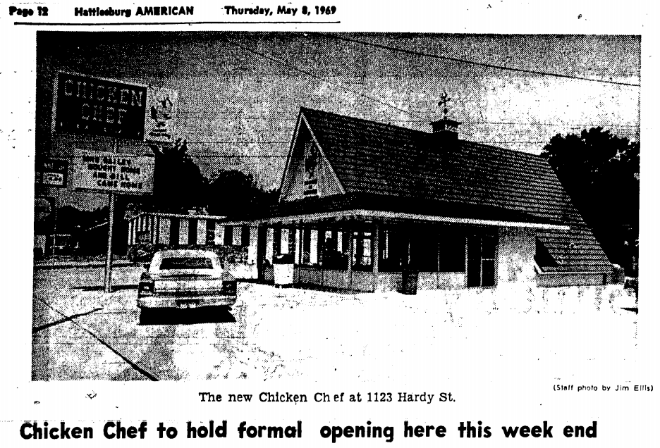 ‘Chicken Chef Hardy Street, Hattiesburg from Hattiesburg American 5-8-1969’ Published April 19, 2017 at 936 × 636 in Chicken Chef: Mississippi’s Own A-Frame Chicken Chef Hardy Street, Hattiesburg from Hattiesburg American 5-8-1969 ‹ Back