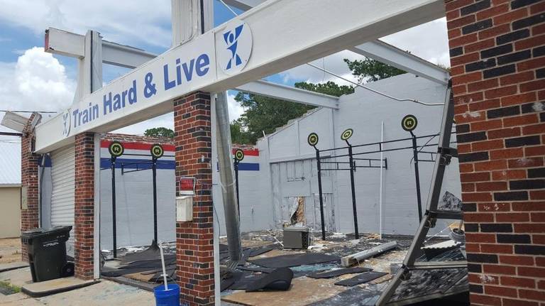 A tornado late Friday took the roof off the popular Singing River CrossFit at the corner of Ingalls Avenue and Market Street. Karen Nelson klnelson@sunherald