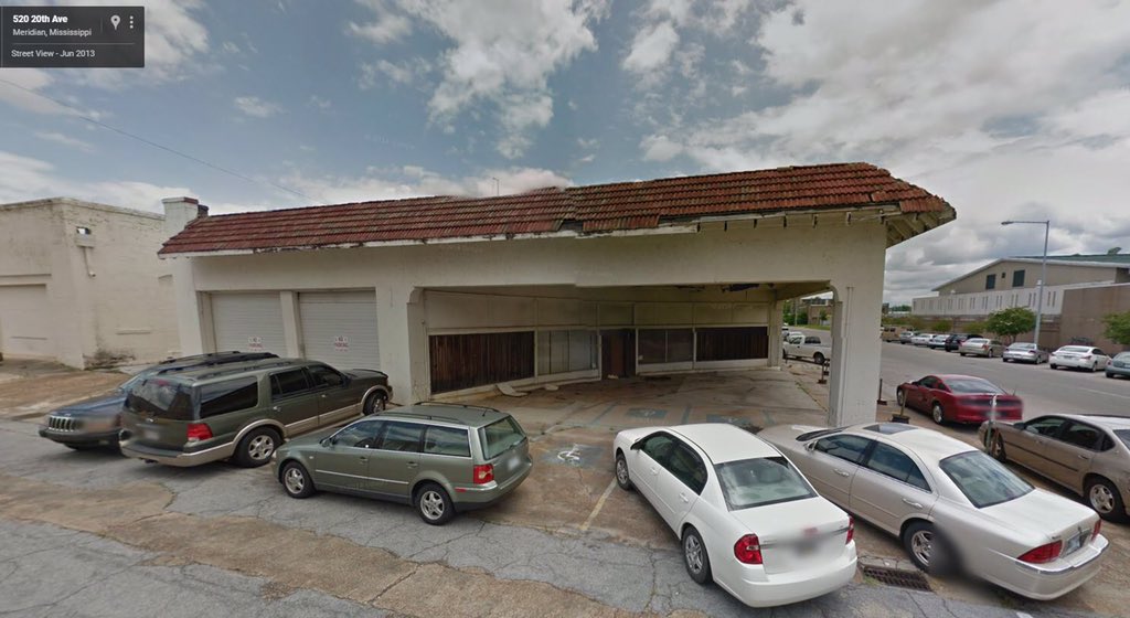 Commercial block form station. Meridian, Mississippi. Built between 1931 & 1935. Demolished prior to May, 2016.
