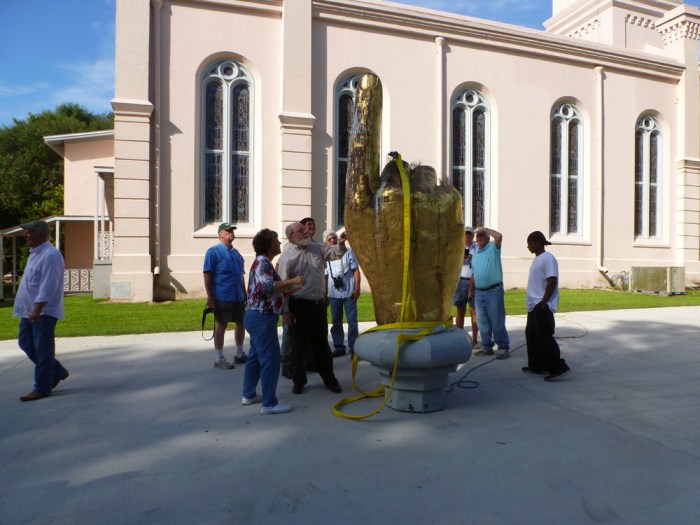 Due to the rain that’s expected to continue through tomorrow, The Hand Pointing to Heaven will not be placed back on its perch in Port Gibson tomorrow morning, so if you were planning to make the trek to watch, keep an eye on the First Presbyterian Church Facebook page to see the re-scheduling plans. If the rain doesn’t stop, they may be able to just float the Hand back up to the steeple!