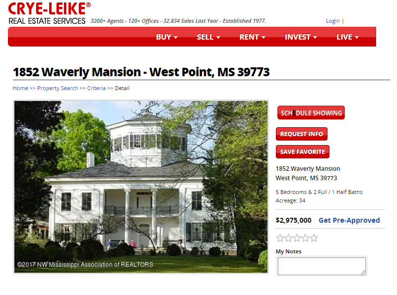 I know that very few MissPres readers have the money to buy Waverley, but I also know that there are some out there who know people with that kind of money and the love of Mississippi history and amazing architecture to consider it. Pass this post along to them, won’t you?