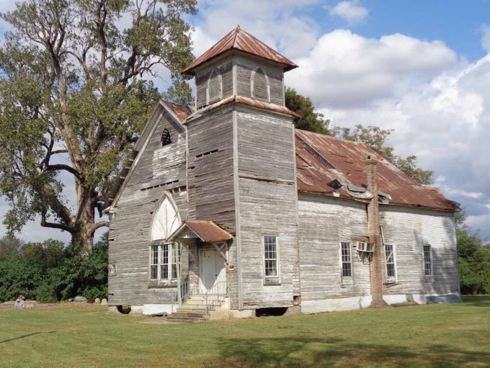 New Hope Missionary Baptist Church is a rare example of an early twentieth century rural African American Delta church. Constructed in 1918, the building survived the great flood of 1927 because of its close proximity to Deer Creek, which is higher than the surrounding land. A wood-framed building with hints of Gothic Revival style in the infilled pointed arches, the abandoned church has several large holes in the roof, allowing rain to poor in. In addition to the leaking roof, there are cracks between much of the clapboard siding, allowing water to blow in during a storm.