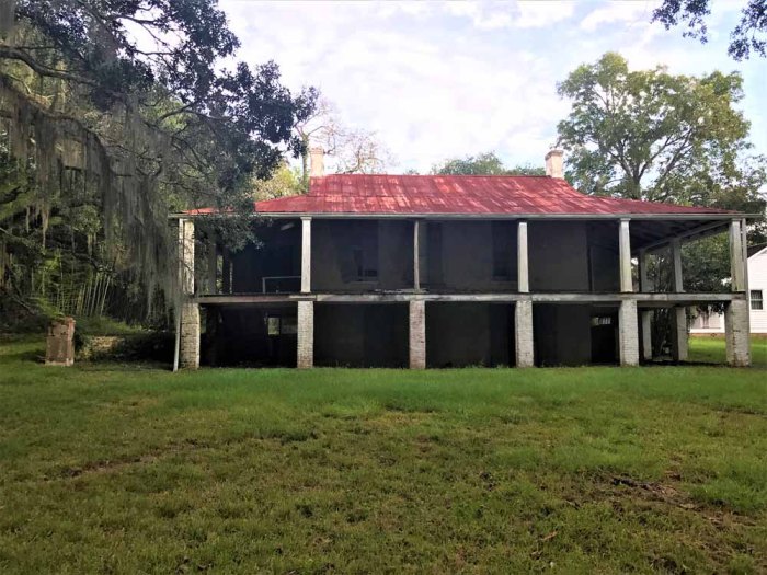 An outstanding example of an early vernacular residence, Saragossa began life as an overseer’s house on the plantation owned by Stephen Duncan, who would become one of the largest slaveholders and cotton planters in the United States. Though the date of construction is unknown, an 1826 survey map depicts the house, then a side-gabled cottage with end chimneys, and eight slave quarters to the rear. Subsequent remodeling in the 1830s and 1850s enlarged the house and gave it the distinctive West Indies form it has today. Despite decades of neglect by an absentee owner, the house retains much of its historic character.