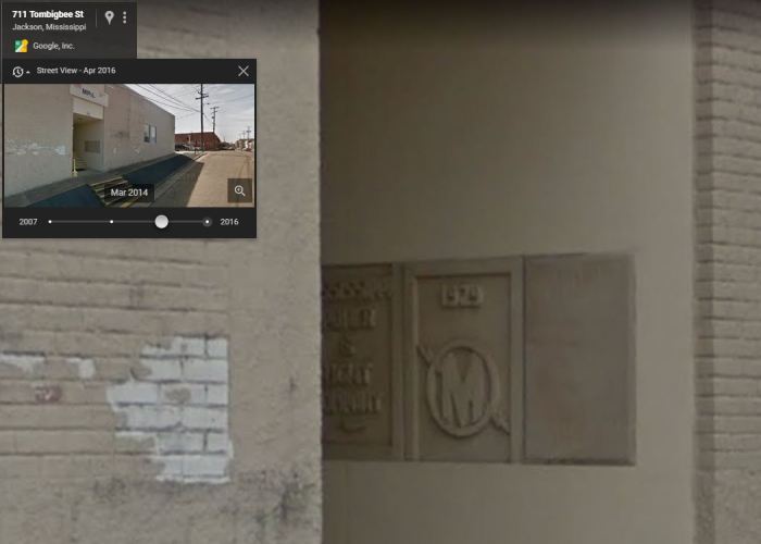 Still not 100% convinced that it is indeed the same building? A closer inspection reveals a ‘cornerstone’ in the stairwell with a big ol’ 1929 date and a Mississippi Power and Light Company logo. Anyone in Jackson care to check out that seemingly blank placard and let us know if it contains the name N.W. Overstreet?