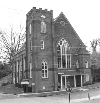 Built from 1901 to 1905, Jackson Street Missionary Baptist Church is a locally significant example of an early 20th century Gothic Revival auditorium-plan church with a tall corner tower and a two-story projecting bay. The building also represents the strides that the African American community of Vicksburg had made by the turn of the century in order to construct this and other large churches. The congregation moved from rented quarters to their unfinished building in 1905, completing the tower around 1908. The building was designed and built by E.J. Allein, an African American contractor from Scranton, Pennsylvania. The large sanctuary with its vaulted beamed ceiling and balcony could hold up to 800 people, according to the 1908 publication Leading Afro-Americans of Vicksburg, Mississippi, which also stated that the church was the “largest and finest owned by Blacks in the state of Mississippi.”