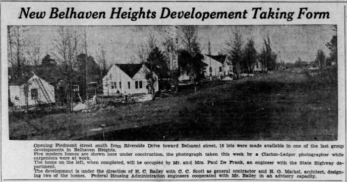 I didn’t get interested in historic preservation because I loved the simple asbestos-shingled houses of the 1930s through the 1950s that have come to be called Minimal Traditional style, but I have to admit that over the years, I’ve really come to love this era of housing, probably because I’ve lived in a 1950 Minimal Traditional for 20 years now. These non-flashy houses are solid, American, and fiscally responsible (which is very important to me and, I’m told, Tate Reeves), but they have all the amenities I love in old houses, like conventional foundations, porches, wood floors, solid doors, and wood windows, along with original modern conveniences such as a decent-sized kitchen and nicely tiled bathrooms. So when I stumbled across this little notice in the Sunday real estate section of the January 21, 1940 issue of the Clarion-Ledger, I had to smile–and then go look at how these MinTrads have fared. Thankfully, Belhaven has a local historic district that has kept demolition in the neighborhood to a minimum and has done a good job at maintaining the huge variety of styles found here, including these 1940 houses.