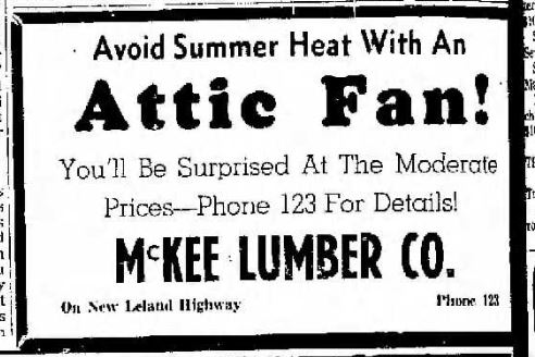 From the July 23, 1940 edition of the Greenville Delta Democrat Times. The McKee Lumber Co, was selling attic fans.