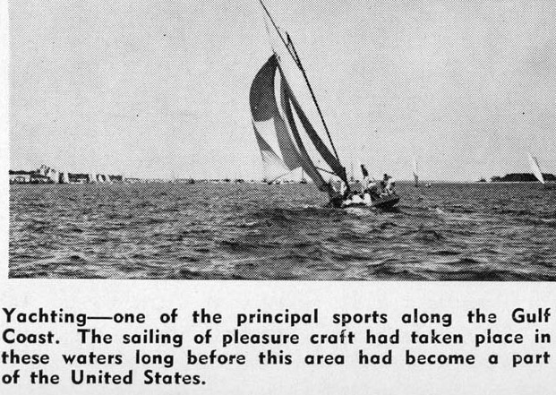 Sailing, boating, deep-sea and fresh-water fishing, golf, tennis, horseback riding and any other type of sea-side recreation that you might expect to find in the most luxurious resort can be enjoyed on America’s riviera, the Mississippi Gulf Coast. Excellent hotels, cottages and tourist courts are located at regular intervals along the highway.
