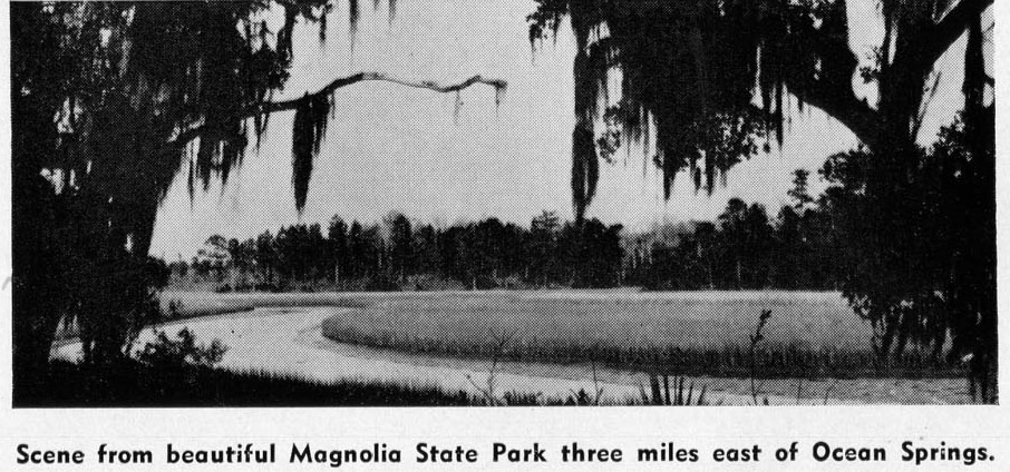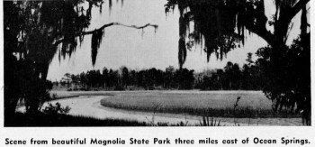 Just a few miles north-west of Pascagoula and on the highway is Magnolia State Park. Attractive and inexpensive cabin accommodations, plus recreational opportunity make this modern park a convenient stopping place for visitors.