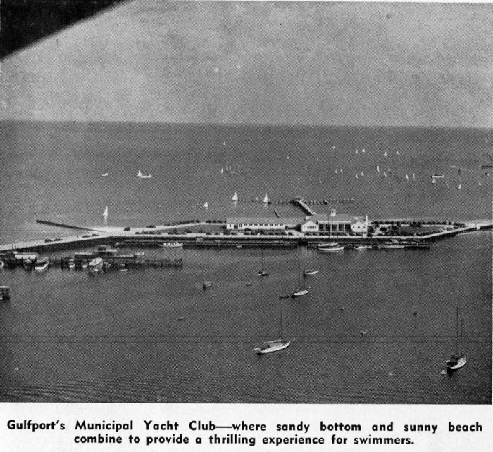 Gulfport, newest of the seven cities, combines business with pleasure in a way that makes this attractive city an ideal vacation spot. Located in the center of this fun-loving resort region, Gulfport is headquarters for yachting, sailing and excursions. Contrasting the sporting atmosphere of the beautiful small craft harbor is the hustle and bustle of the deep water port. Just west of Gulfport is the smooth, green campus of Gulf Park College for girls.