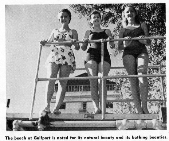 At Gulfport, key city of the Mississippi Gulf Coast, U.S. 49 terminates its journey through the state by junctioning with U.S. 90. Located in the center of a famous resort region, Gulfport makes an ideal headquarters from which all historical and recreational points can be easily reached. No opportunity for sea-side entertainment has been overlooked by this progressive resort city.