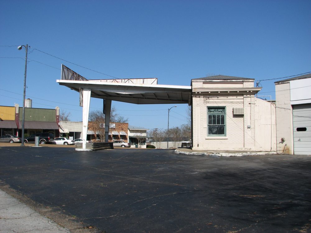 Gulf Oil Gas Station (Former), 201 E. Commerce St. (SE Corner of E. Commerce St. and S. Maple St.), Aberdeen, MS – Side Facade; March 11, 2010; W. White, photographer